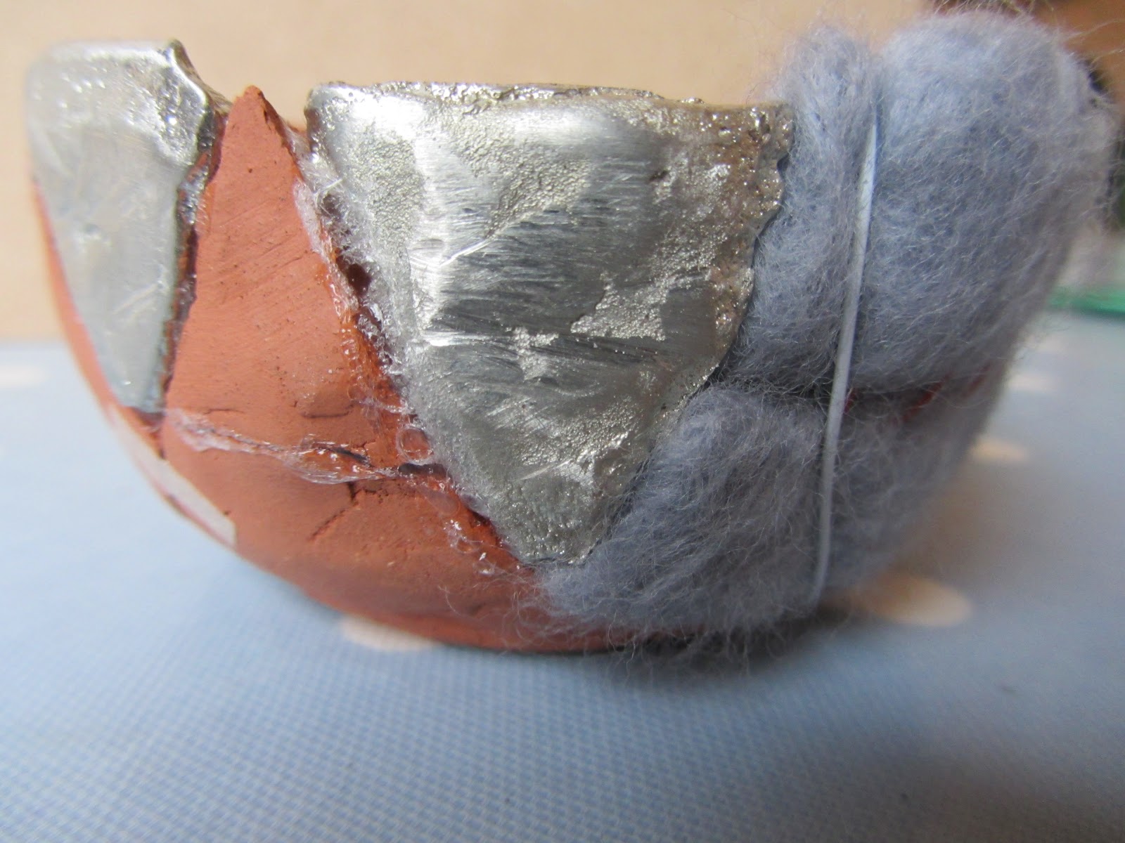 Next I used the base of the can, which is thicker than the sides and has circular grooves, and put enamel powder into the centre circle and put it into the enamel kiln.
